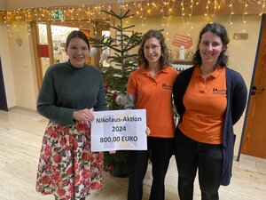 Die Nikolausaktion der Kolpingfamilie Pfaffenberg fand auch in diesem Jahr wieder großen Anklang bei der Bevölkerung. 40 Familien mit exakt 100 anwesenden Kindern besuchten die zwei Teams rund um den Nikolaustag. Der Besuch kostet grundsätzlich nichts, Spenden nahm der Nikolaus von den Familien jedoch gerne an, jedoch nur, um sie wiederum selbst einem guten Zweck zukommen zu lassen. Die Wahl der Kolpingvorstandschaft fiel in diesem Jahr auf den Pfaffenberger Kindergarten St. Elisabeth. Die Leiterin der Kolping-Gruppe „Junge Familien“, Alexandra Gangerl, sowie die 2. Vorsitzende des Gesamtvereins, Kathrin Amann, übergaben die zusammengekommenen 800 Euro der Kindergartenleiterin Bettina Windstoßer.