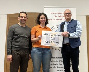 Im Rahmen der Nikolausaktion 2022 waren rund 40 Familien in Pfaffenberg, Mallersdorf, Ascholtshausen, Westen und Oberellenbach besucht worden. Dabei sind Spenden in Höhe von 885 Euro zusammengekommen. Aus der Vereinskasse der Kolpingfamilie wurde dieser Betrag auf 1.000 Euro aufgestockt, um ihn für einen guten Zweck zu spenden. Bedacht wurde der Schulförderverein St. Martin Mallersdorf-Pfaffenberg. Der noch recht junge Verein hat es sich u.a. zur Aufgabe gesetzt, Zuschüsse für Schulfahrten und den Besuch von kulturellen Veranstaltungen zu gewähren, Schüler aus sozial schwachen Familien zu unterstützen, die Beschaffung von Musikinstrumenten für die Bläserklasse zu bezuschussen oder auch Schüler für besonderes Engagement auszuzeichnen.