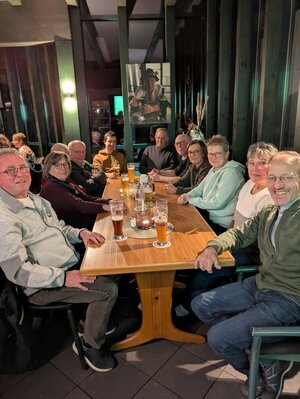 Testweise, um auszuloten, ob die Beteiligung dann höher ausfällt, fand der inzwischen traditionelle Herbststammtisch dieses Jahr an einem Samstag statt. Im fast schon übervollen Gasthaus "Zum gemütlichen Treff" fanden sich 25 Mitglieder zu einem gemeinsamen Abendessen, ein paar Getränken und guten Gesprächen ein. Fazit: Experiment gut ausgefallen, nächstes Jahr wieder Samstag!