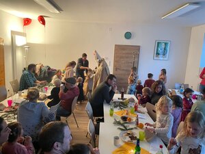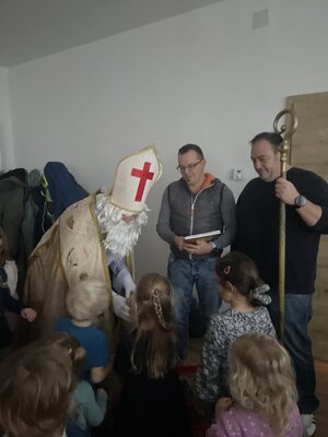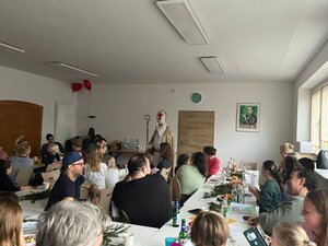 Auf der Nikolausfeier waren 13 Familien mit 24 Kindern anwesend. Nach einem kurzen offizielen Teil kam der Nikolaus zu besuch und hatte für die Kinder kleine Säckchen mit Geschenken dabei.