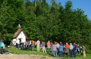 Ausgesprochener Beliebtheit erfreut sich die jedes Jahr von der Pfaffenberger Kolpingjugend ausgerichtete Radlmaiandacht. Und so haben sich letzten Freitag am späten Nachmittag wieder rund 40 Teilnehmer quer durch alle Altersgruppen der Kolpingfamilie mit den Fahrrädern im Konvoi aufgemacht, um die idyllisch am Waldrand gelegene Dietl-Kapelle in Holztraubach anzusteuern. Bei milder Abendsonne wurde das Ziel über den neuen Radweg sicher erreicht. Da die Geistlichen der Pfarrei anderweitige Verpflichtungen hatten, übernahm die als Gemeinde-Assistentin tätige Lisa Rattei aus der Vorstandschaft der Kolpingjugend die Gestaltung und führte gekonnt durch das abwechslungsreife Andachts-Programm mit dem Titel „Maria, du hast viele Namen“, das aus Litanei-Rufen, meditativen Texten und Fürbitten bestand. Die gemeinsam gesungenen Marienlieder „Gegrüßet seist du Königin“, „Meerstern ich dich grüße“ und „Segne du Maria“ wurden von Vorstandskollegin Nicole Paßreiter auf der Klarinette begleitet. Nach Abschluss der stimmungsvollen Maiandacht wurde der Heimweg angetreten, wobei ein gemütlicher Einkehr-Stopp in der am Radweg angeschlossenen Sportgaststätte Igeltal nicht fehlen durfte.