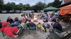 In der lauen Abendluft und mit Unterstützung des wärmenden Feuers hielten die Besucher lange aus und die Hüpfburg bewährte sich als Unterhaltungsgarant für die kleinen Gäste. Nach Ausschankende versammelten sich dann endlich auch die Mitglieder der Kolpingjugend um das Feuer und gingen ihrerseits zum geselligen Teil des Abends über.