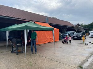 Trotz regnerischer Witterung ließen sich kürzlich vierzehn Familien der Kolping-Gruppe „Junge Familien“ nicht von ihrem geplanten Zeltlager abhalten. Ziel der Unternehmung war in diesem Jahr die Huber-Mühle in Oberlindhart. Allerdings musste man wegen des Regens auf die sonst übliche und bei den Kindern beliebte Anreise mit den Fahrrädern verzichten. Da die Zelte unter dem ausladenden Vordach aufgebaut werden durften, war schon mal für ein trockenes und sicheres Nachtlager gesorgt. Für die Kinder stand ungeachtet des „Sauwetters“ der Spaß im Mittelpunkt: sie spielten Fangen, waren mit Bobbycar, Roller und Kettcar unterwegs oder zogen sich zum Versteckspiel in die Zelte zurück. Am Abend besserte sich dann das Wetter, so dass gemeinsam gegrillt und die Feuerschale entzündet werden konnte. Während es für die Kinder gegen 22 Uhr Zeit war, sich in die Schlafsäcke zu verkriechen, hielten die Eltern noch bis tief in die Nacht am wärmenden Feuer aus. Nach einem gemeinsamen Frühstück und dem Abbau der Zelte wartete noch ein Highlight auf die Kinder: sie durften am Morgen zusammen mit Familie Huber die Kühe füttern und so einen Einblick in das Leben auf dem Bauernhof gewinnen.